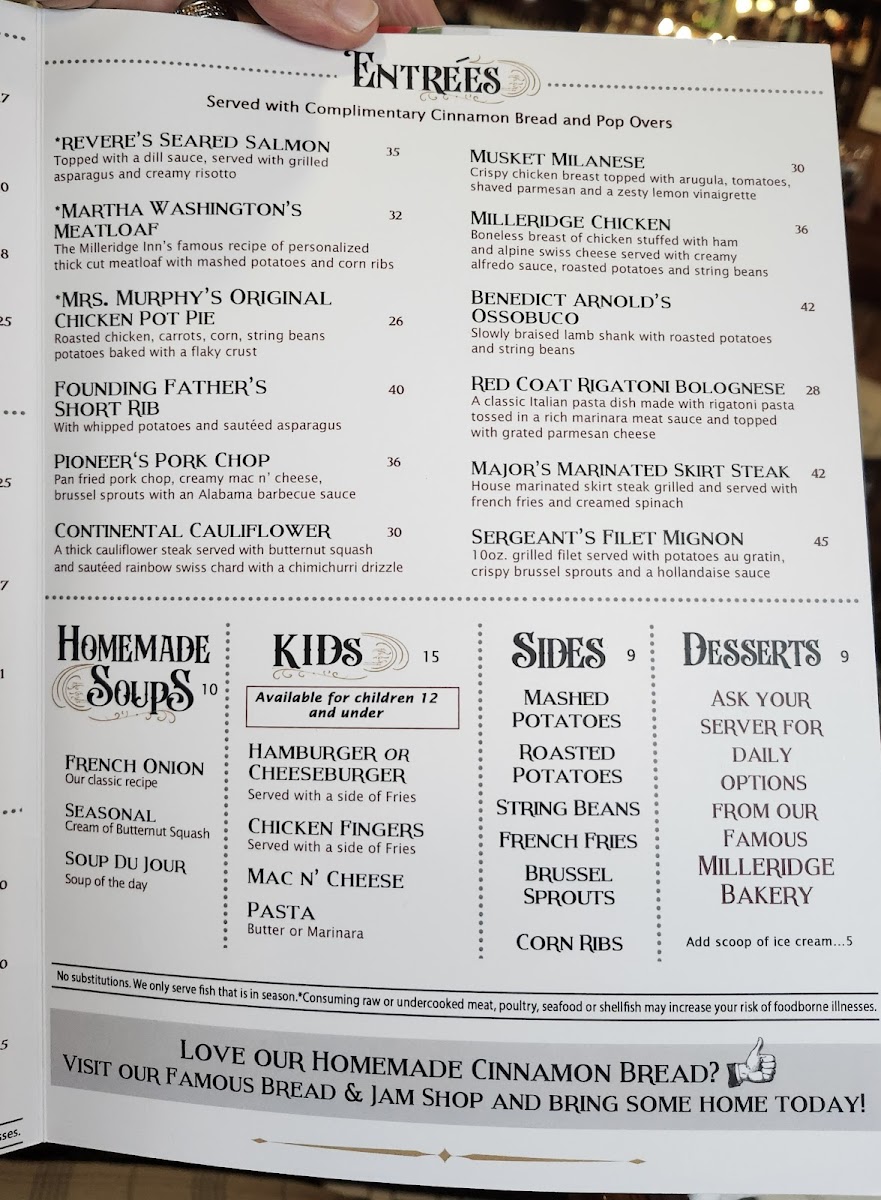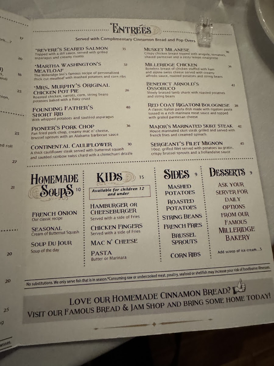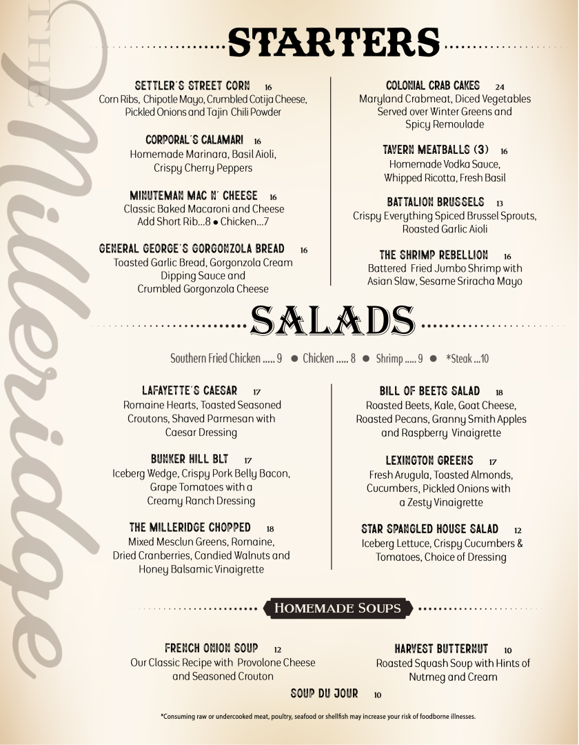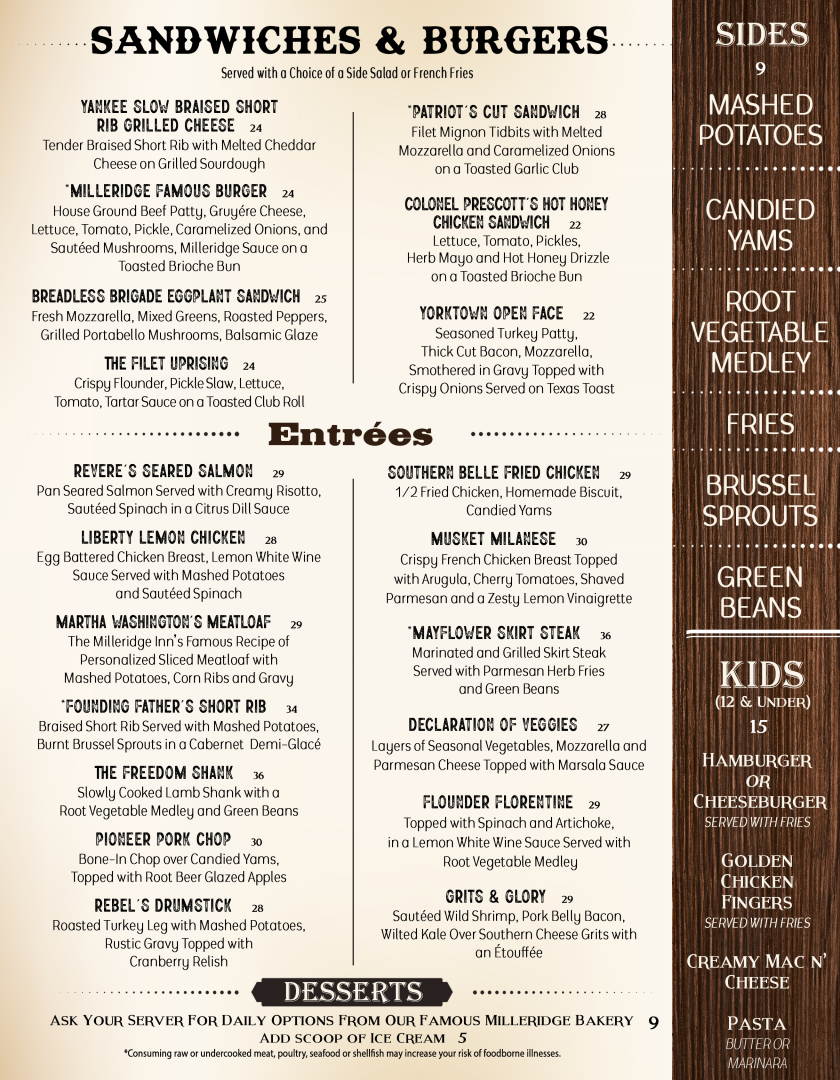 The Milleridge Inn Menu