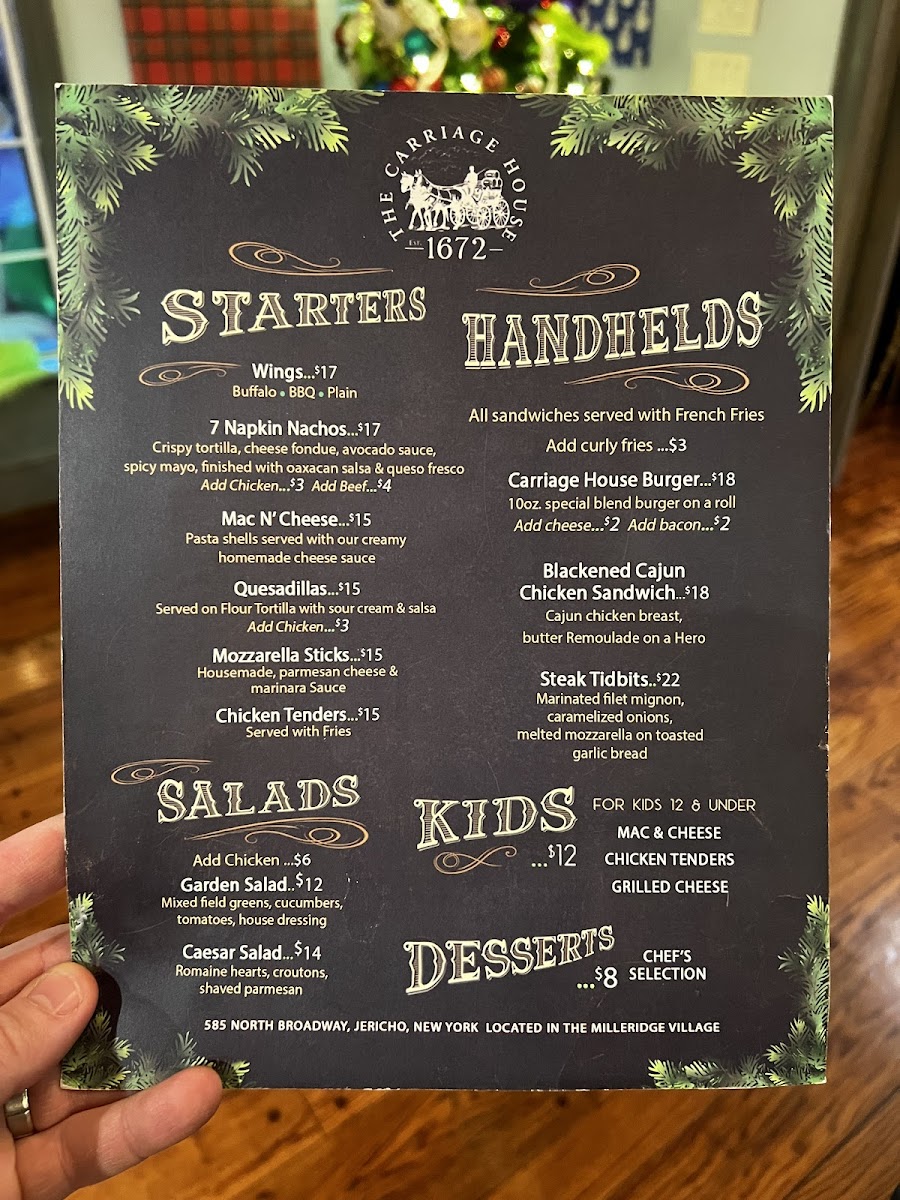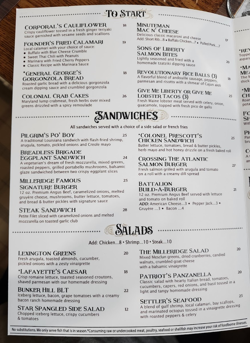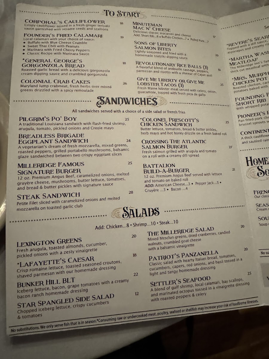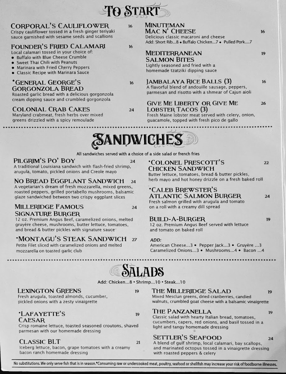 The Milleridge Inn Menu
